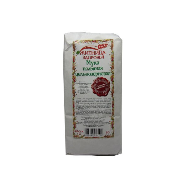 Полбяная мука из цельного зерна - настоящая "живая еда", ведь в ней на 100% сохраняются все витамины и минералы. Для получения цельнозерновой муки зерно полбы вымолачивают, причём извлекается оно из ломких колосков не чистым, а вместе с приросшими к нему чешуйками. Такой метод позволяет сохранить в готовой муке все полезные вещества, присущие несмолотой полбе. В этом злаке содержится полный набор витаминов и 18 аминокислот, которых нет в животной пище.