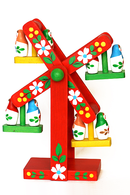 На красивой карусели катаются матрешки. Эта игрушка будет прекрасным подарком, она удивительным образом передает и создает праздничную атмосферу. Качественно сделана и раскрашена, очень веселая и яркая.