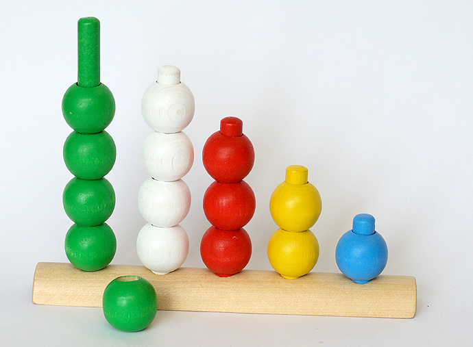 Шары можно считать, сортировать по цвету, катать, пытаться складывать на палочки по определенному, заранее заданному правилу.