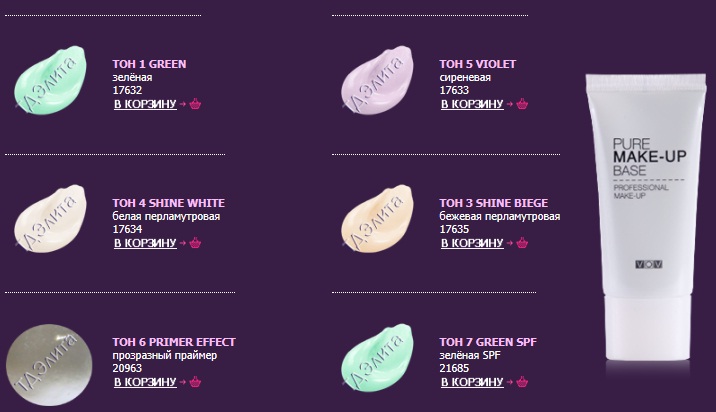 Violet / Фиолетовый - для устранения жёлтого оттенка цвета лица и тёмных кругов под глазами.