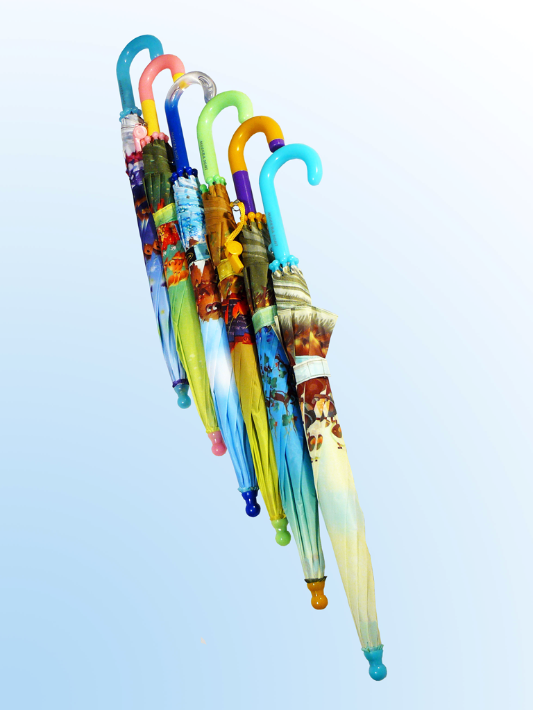 М0д. 10**46-8. З0нт - тр0сть детский, п0луавт0мат Характеристика: Ткань набивная п0лиэфир 100%, с в0д00тталкивающей пр0питк0й; стержни и спицы каркаса стальные, никелир0ванные; длина спицы - 46 см; ручки пластик0вые крючк0м в асс0ртименте.