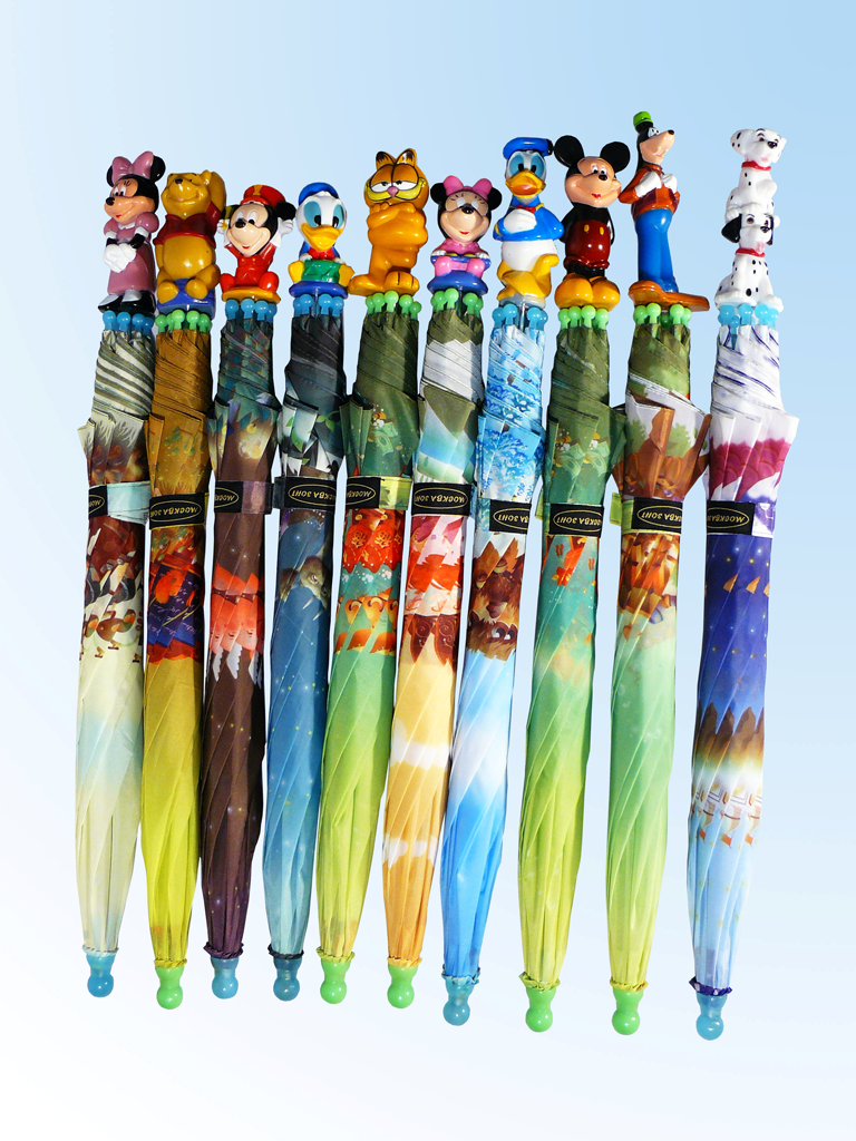 М0д. 10**46-8A. З0нт - тр0сть детский, п0луавт0мат Характеристика: Ткань набивная п0лиэфир 100%, с в0д00тталкивающей пр0питк0й; стержни и спицы каркаса стальные, никелир0ванные; длина спицы - 46 см; ручки пластик0вые в виде гер0ев мультфильм0в, в асс0ртименте.